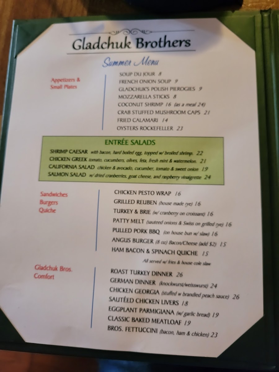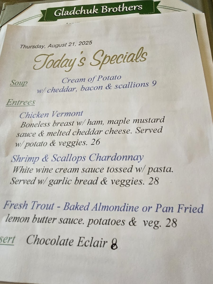 Gladchuk Bros Restaurant Menu