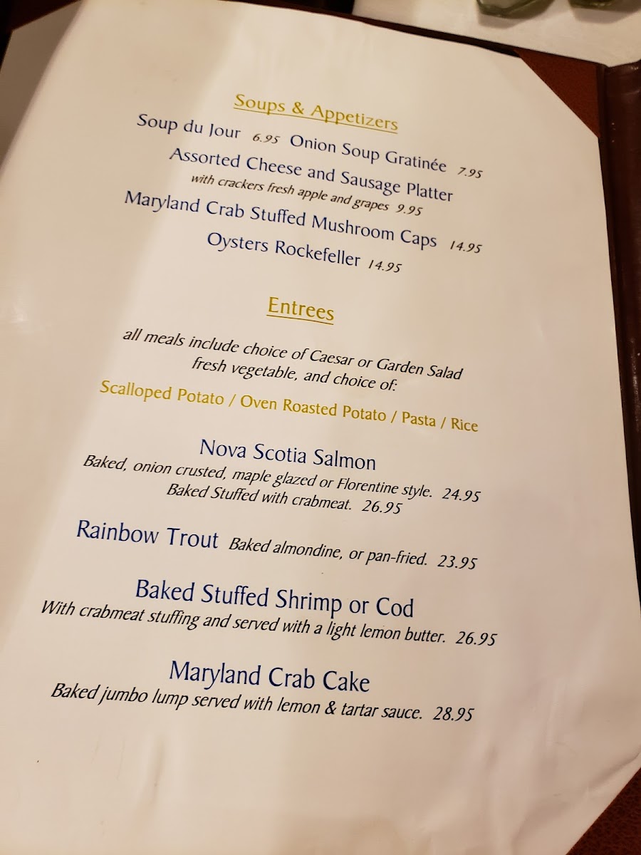 The menu at Gladchuk Bros Restaurant offers a dependable selection of American classics crafted with care, making it a fitting choice for relaxed dinners and casual group gatherings. You'll find hearty starters like Maryland Crab Stuffed Mushrooms and Onion Soup Gratinée alongside comforting entrées such as Pot Roast, Filet Mignon, and BBQ Ribs. Specialty seafood dishes like Deep Fried Chesapeake Bay Oysters and Baked Stuffed Shrimp highlight the local flavors, often enjoyed in the company of friends and family around a warm, inviting table.